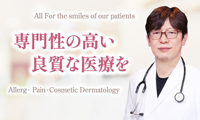 りんごクリニックでは、ペイン内科、アレルギー科に美容皮膚科を併設し、専門性の高い良質な医療を提供しております。
