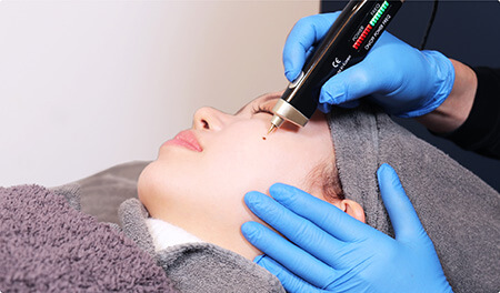 プラズマ波を照射して、皮膚の中のほくろやイボを含めて除去します。