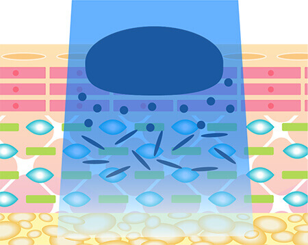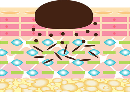 ほくろやイボのある肌の内部では、メラニン色素を持った細胞が存在し、色素沈着が起きています。