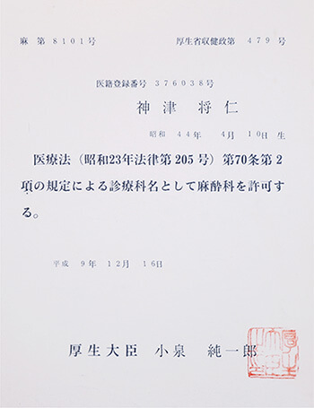 院長の神津は、日本麻酔科学会の麻酔科認定医でもあります。極細注射針を使用して丁寧に局所麻酔を施しますので、痛みが心配な方、痛みに弱い方もご安心ください。