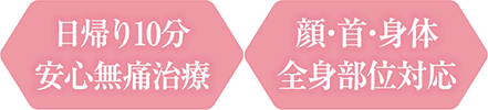 | 注意事項 | ごく稀ですが、内出血、色素沈着のリスクがあります。 ほくろ除去治療後は、日焼けに注意してUVケアをしっかりと行ってください。 治療後2週間は保護テープ又はお渡しする軟膏をご使用ください。 |
