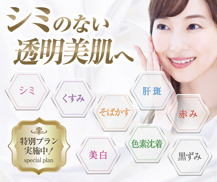 濃いシミ、薄いシミ、くすみ、そばかす、赤ら顔、肌質改善にに加え、お肌のトーンアップ、ハリや潤い、弾力の回復効果が特徴です。